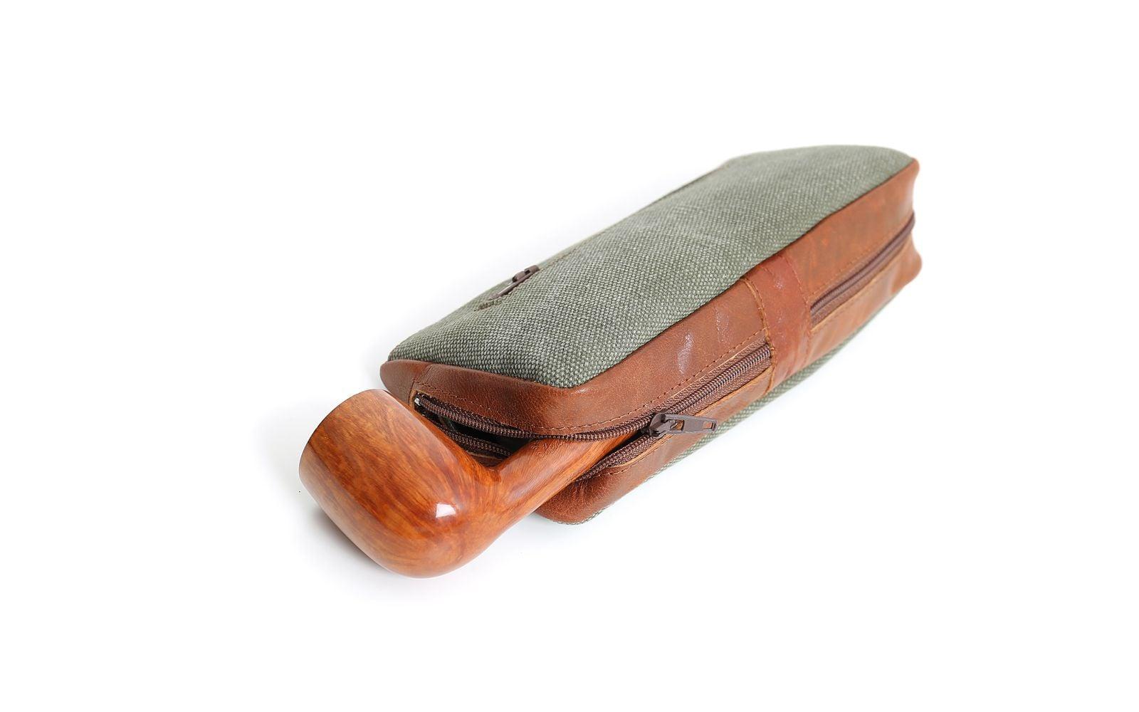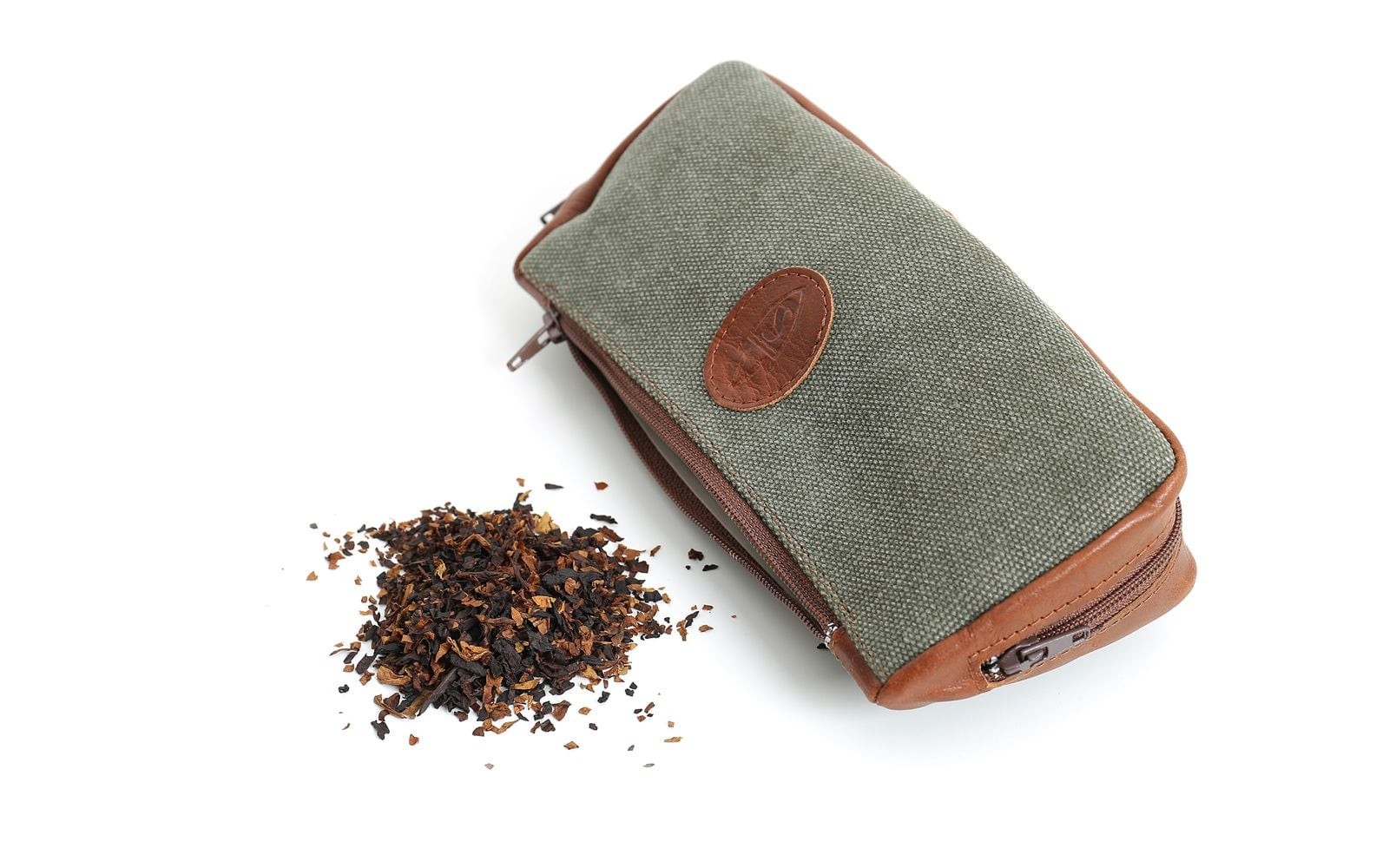 The Savinelli Olive jeans bag, suitable to hold one pipe and loose tobacco, pipe cleaners, filters and other accessories.
