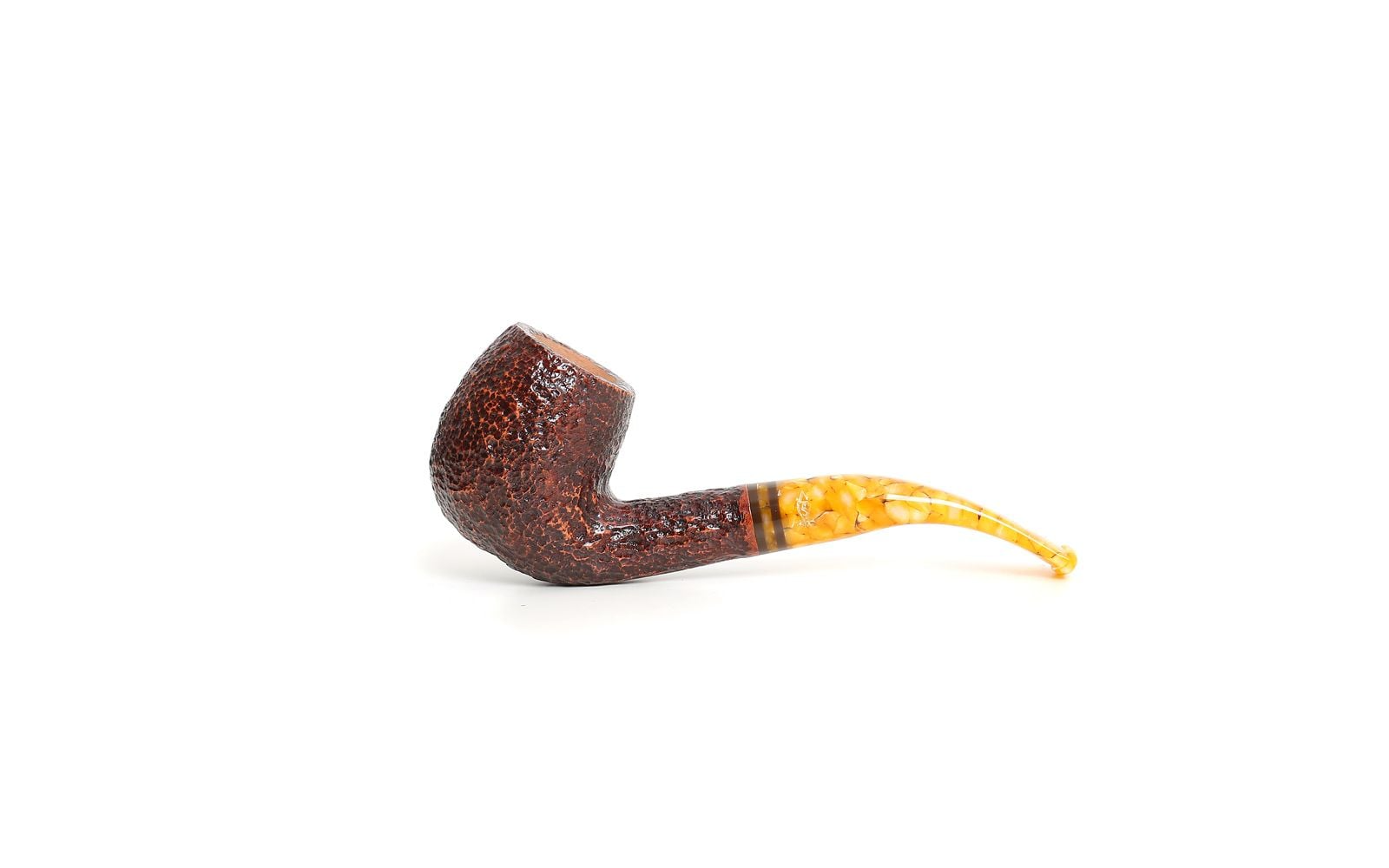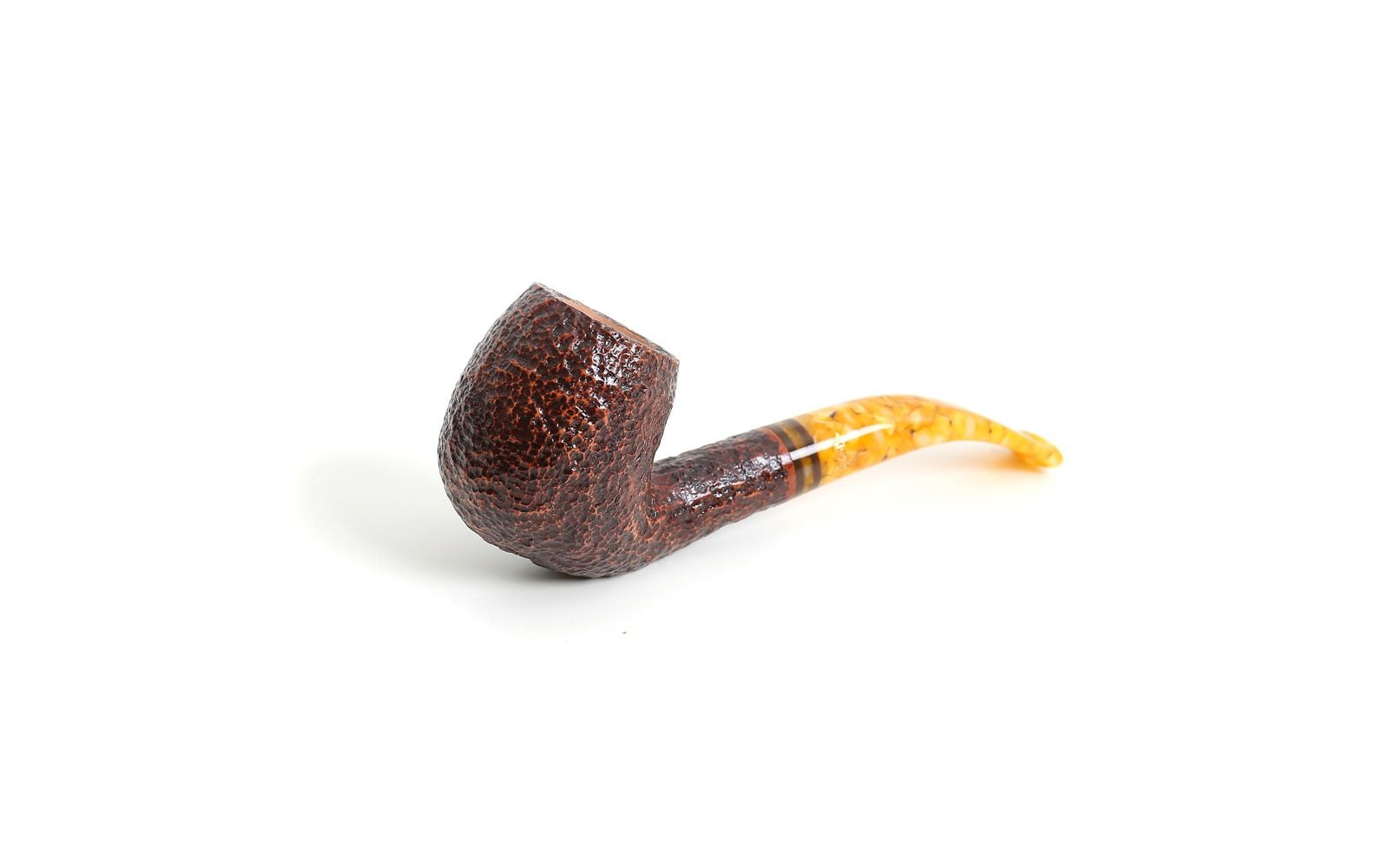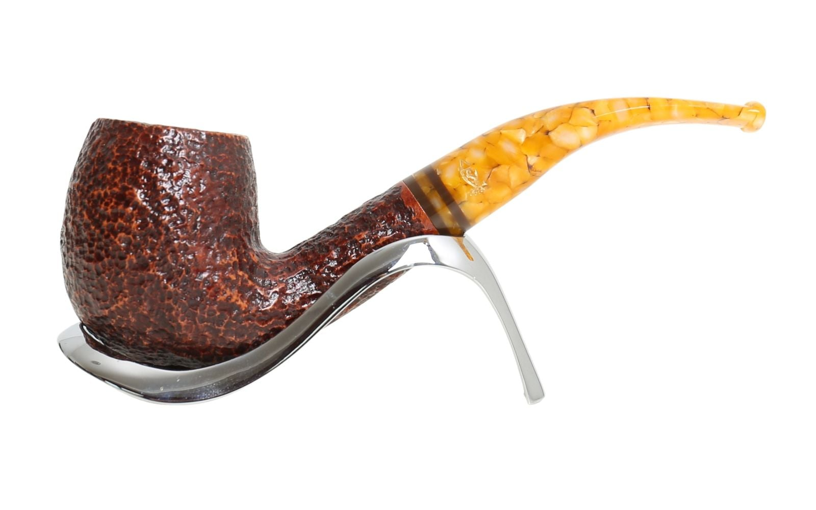 Bent Billiard, rusticated finish. Tobacco chamber flavored with nectar extract for a sweet break in.