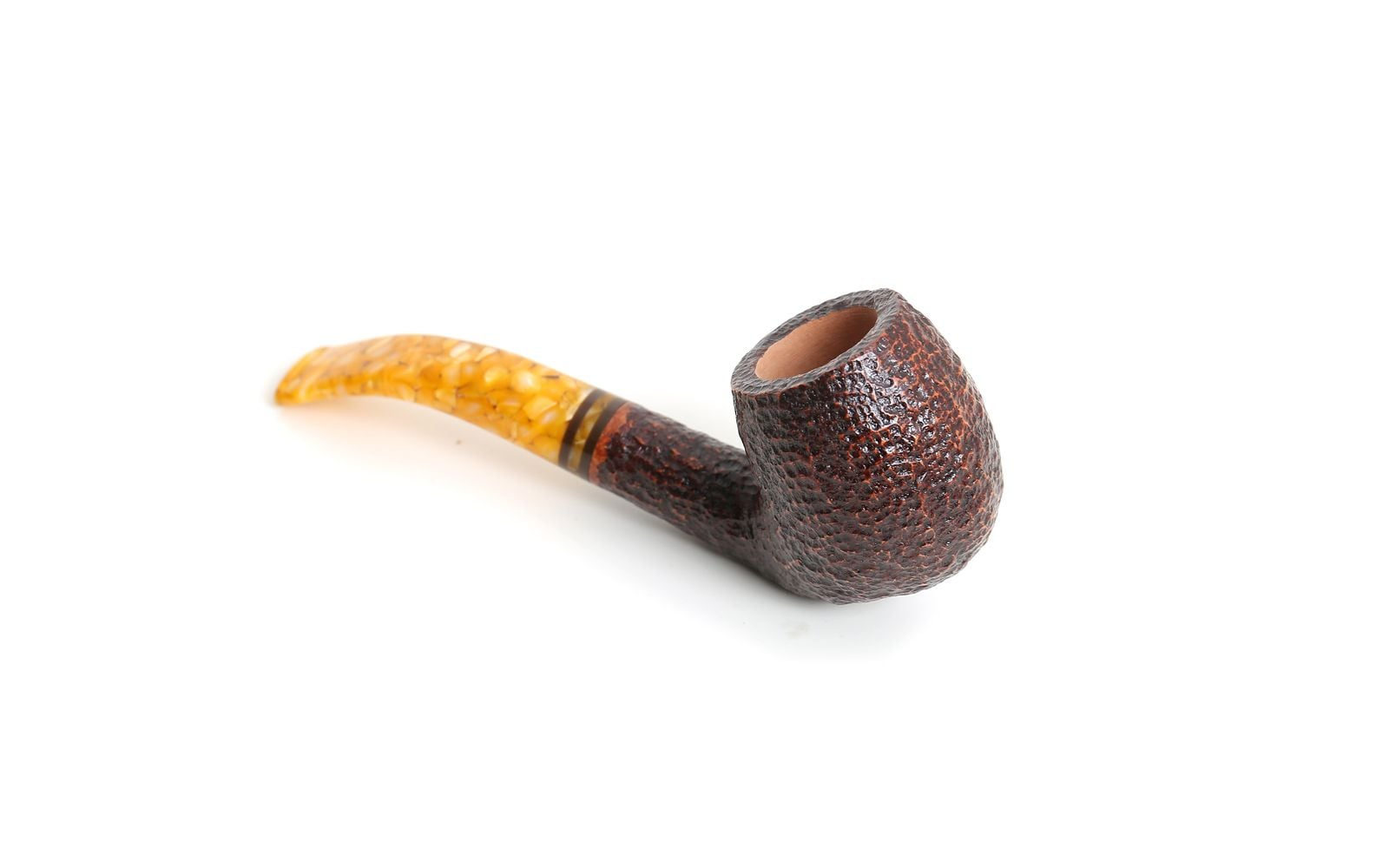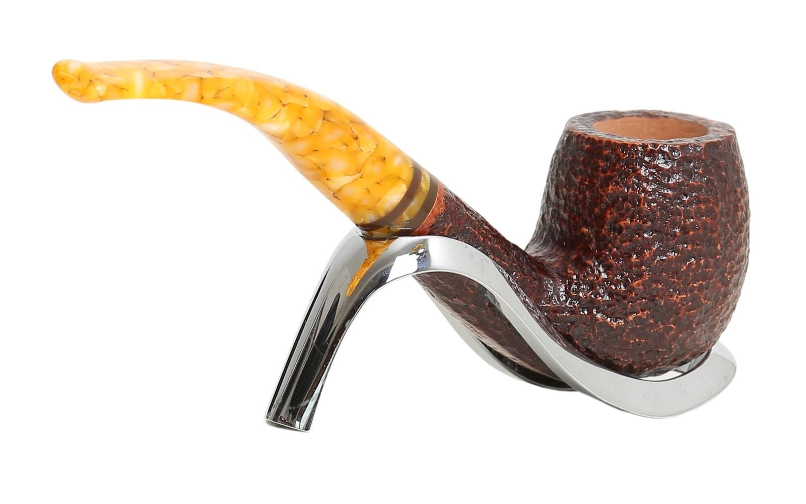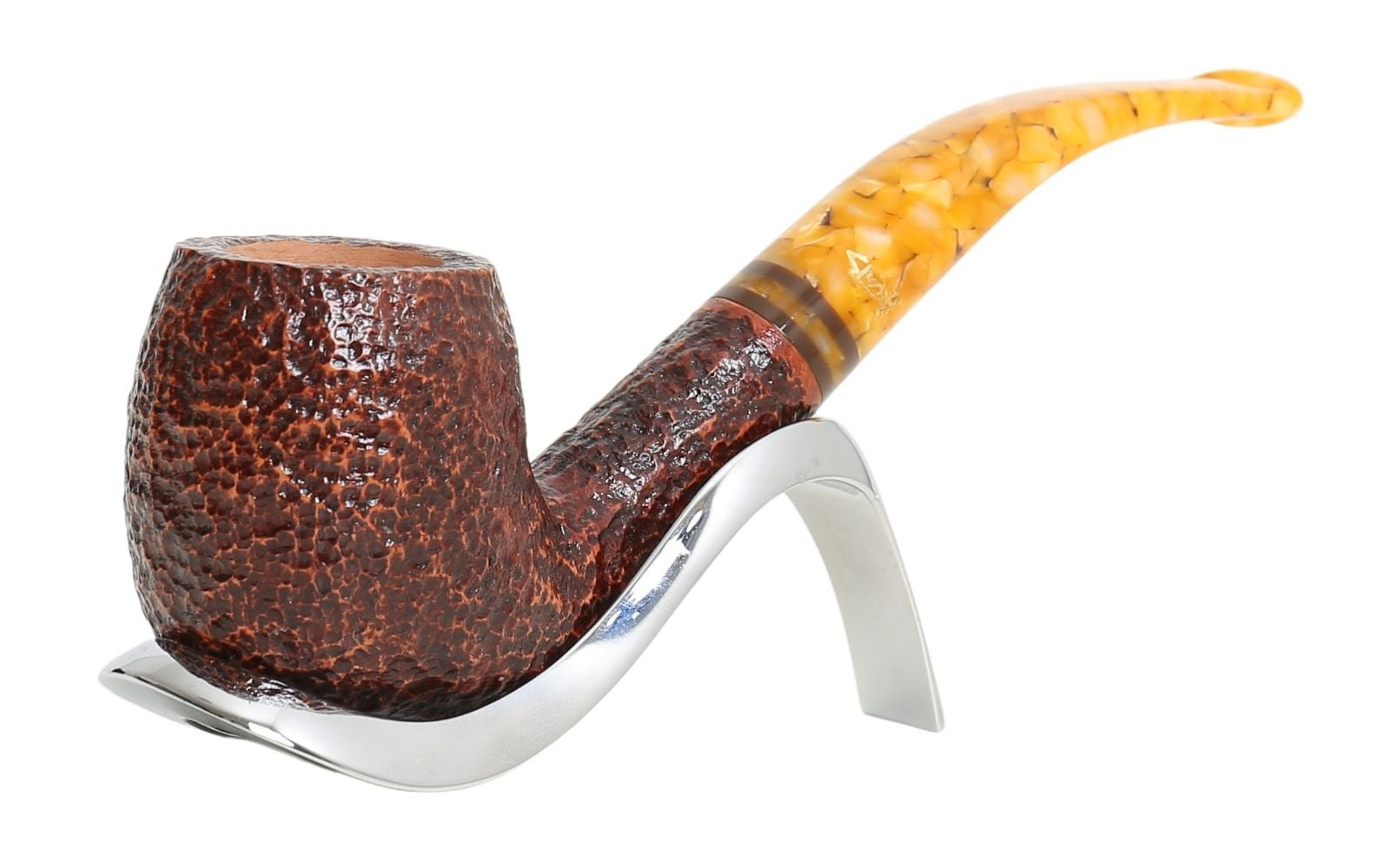 Bent Billiard, rusticated finish. Tobacco chamber flavored with nectar extract for a sweet break in.